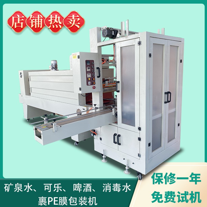 2】消毒液熱收縮包裝機(jī)自動套袋;