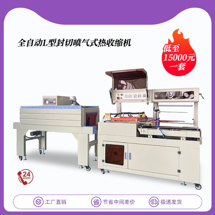 自動套膜熱收縮封切機結構緊湊占地面積小,非常適合配套自動包裝流水線完成產(chǎn)品的自動無人化包裝,適合于單個物品包裝或有底托物品包裝。自動送膜打孔裝置和手動調(diào)節(jié)的導膜系統(tǒng)以及手動調(diào)節(jié)的進料輸送平臺,可適于不同寬度和高度的產(chǎn)品,實現(xiàn)一臺機器滿足各種尺寸的包裝物品。配合L型封切刀使收縮膜包裝一次封切成型,鍍特氟龍不粘層封口布,封切不黏膜,且封口整齊不開裂,產(chǎn)品經(jīng)封切后,進入自動塑料膜熱收縮包裝機完成包裝。